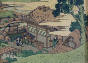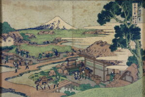 34. Лист из серии «Тридцать шесть видов Фудзи. Вид Фудзи от чайных плантаций Катакура в провинции Цуруга» 1830 г.