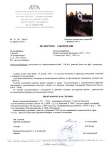 Экспертиза ВХНРЦ И.Э. Грабаря.