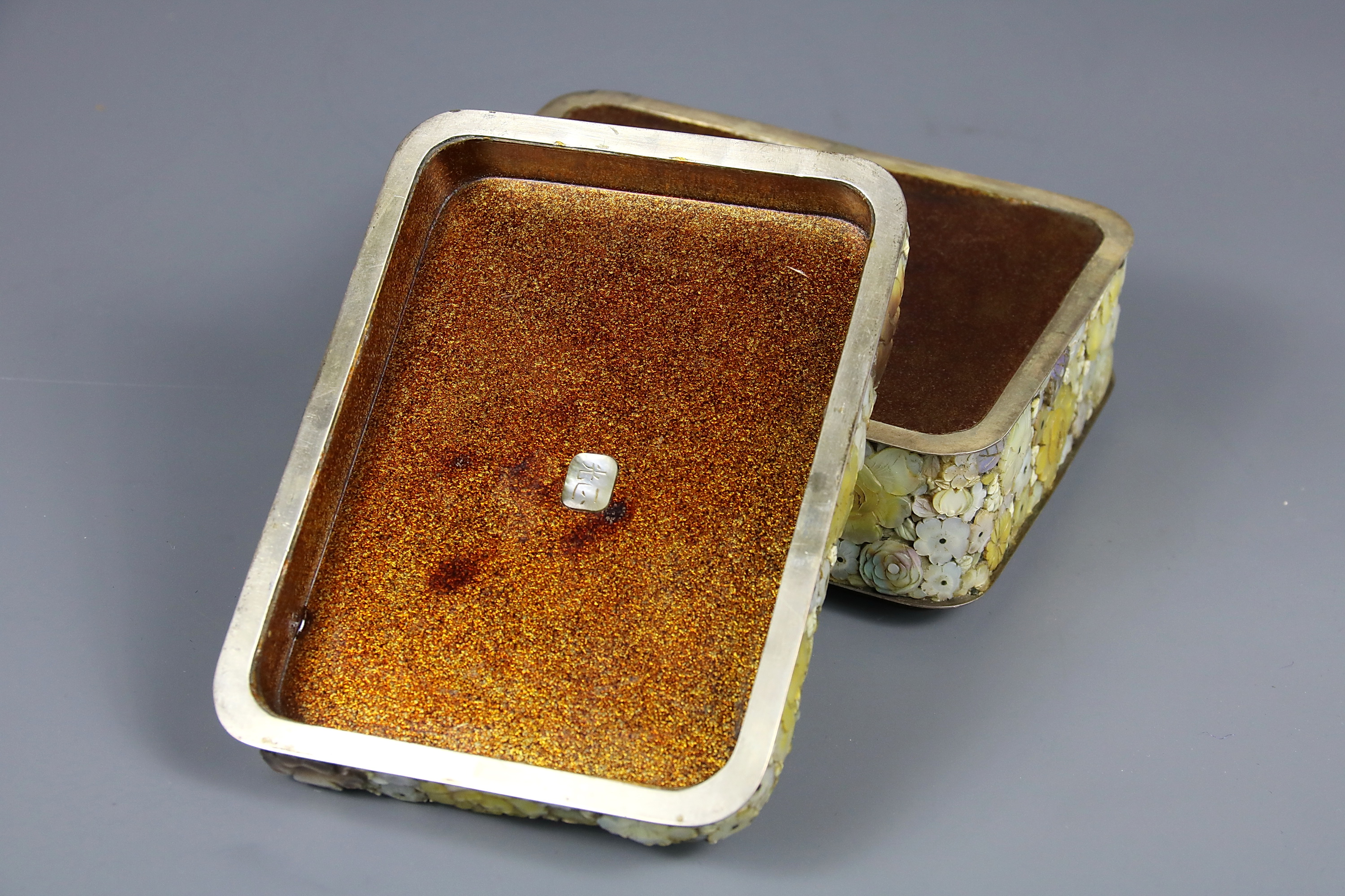 Декоративные мотивы оформления шкатулки взяты из традиционной природной тематики, пронизывающей все сферы японской культуры в жанре ханами ( любование цветами ). Поверхность предмета полностью покрыта множеством цветов, разных видов и размеров. Использована полихромная гамма естественных цветов перламутровых раковин аои.
