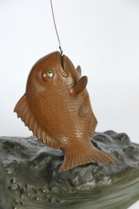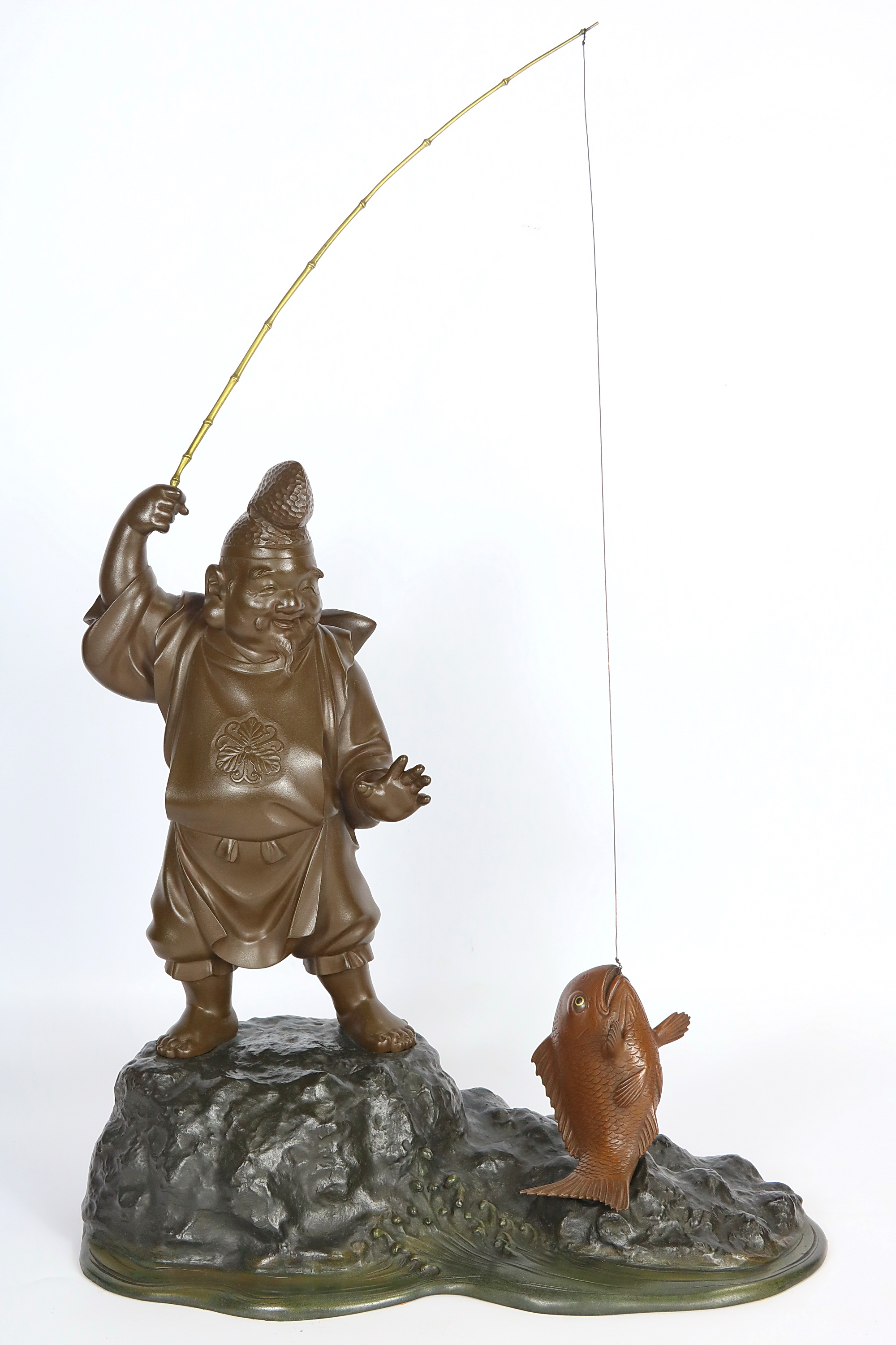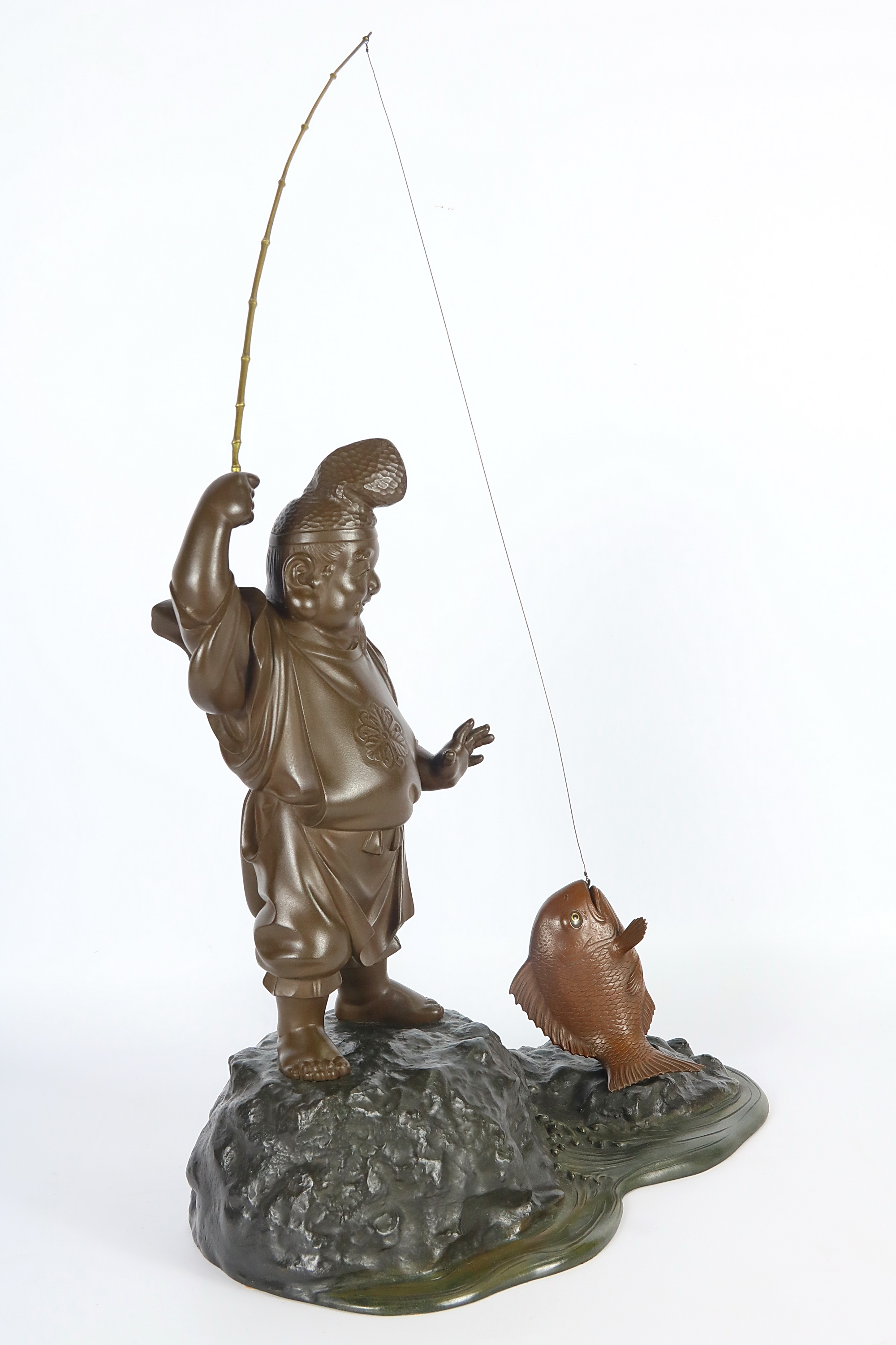 22. Скульптура "Эбису - божество счастья и удачи с рыбой тай" 22. Скульптура «Эбису — божество счастья и удачи с рыбой тай»