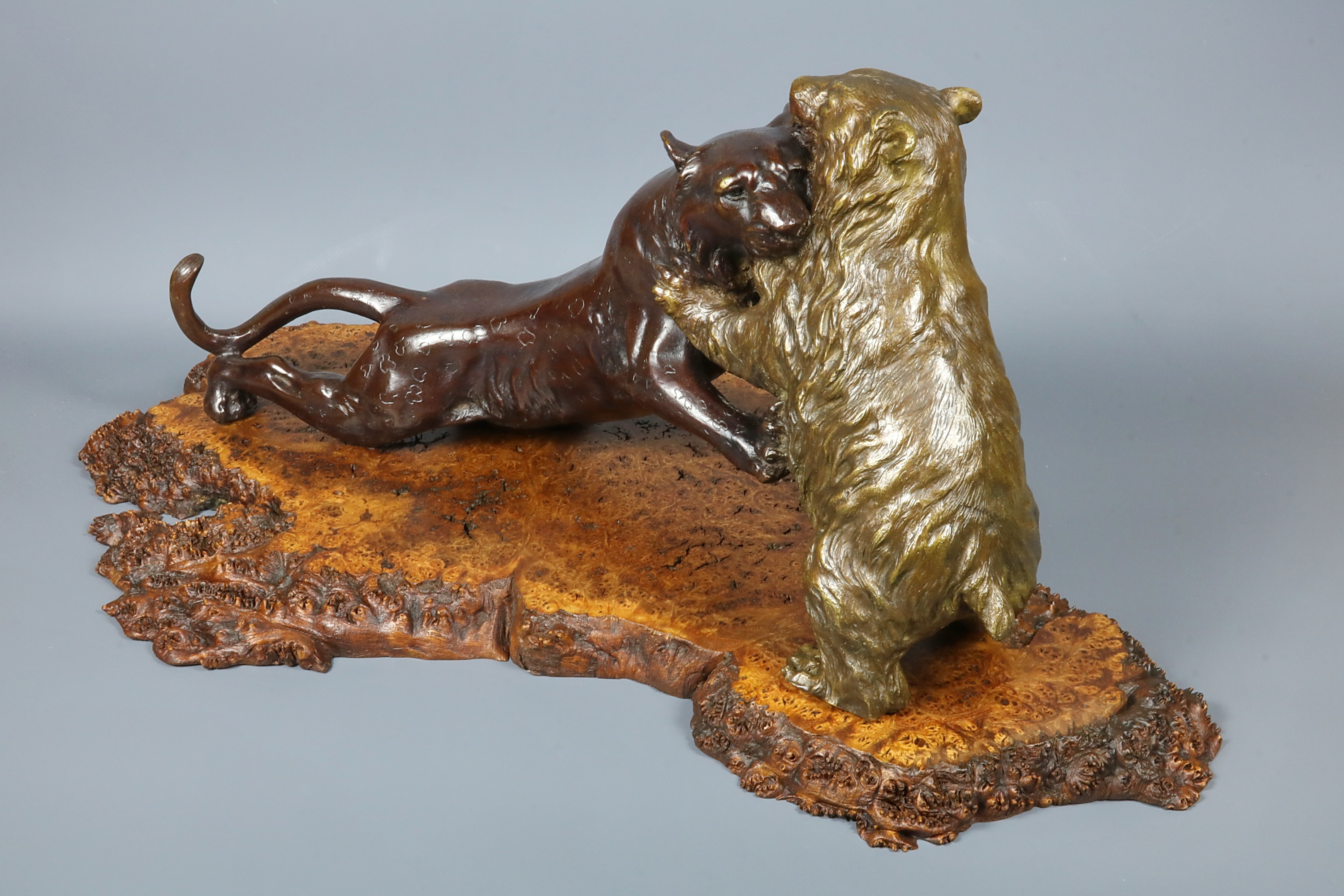 Созданная в металле декоративная скульптура с изображением животных приобрела особую популярность в период Мэйдзи (1868 – 1912гг.). В ней органично сочетались воспринятые японскими мастерами уроки западноевропейской анималистической скульптуры и натуралистические традиции национальной пластики. Такие произведения в значительной степени соответствовали западному вкусу и пользовались в указанный период спросом на внешнем рынке.
