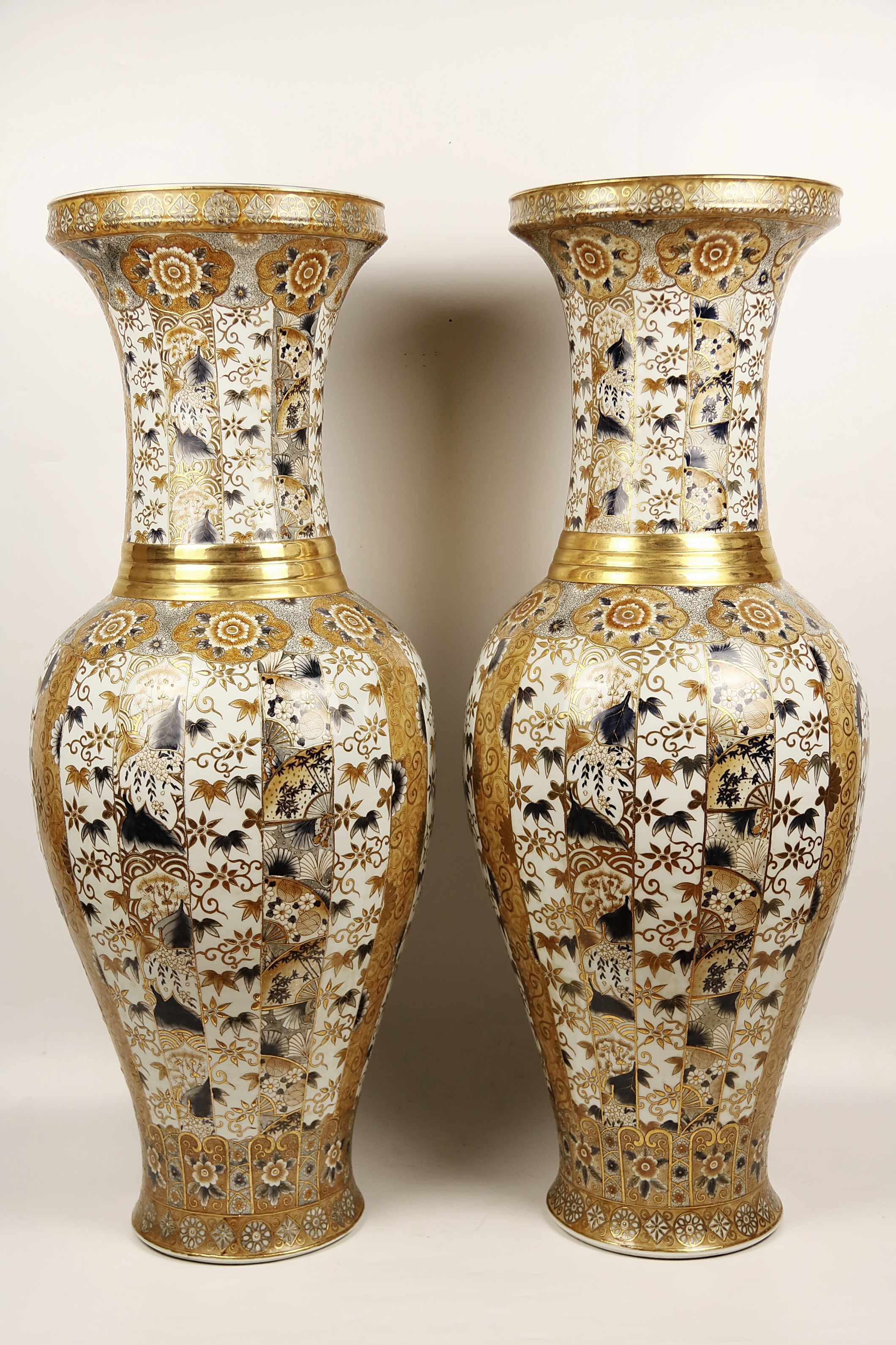 114. Вазы парные «Цветочные орнаменты» Фарфор, надглазурная роспись полихромными эмалями, железными красителями, позолота. Япония, период Тайсё (1912-1926) гг. Высота 90 см. Экспертное заключение.