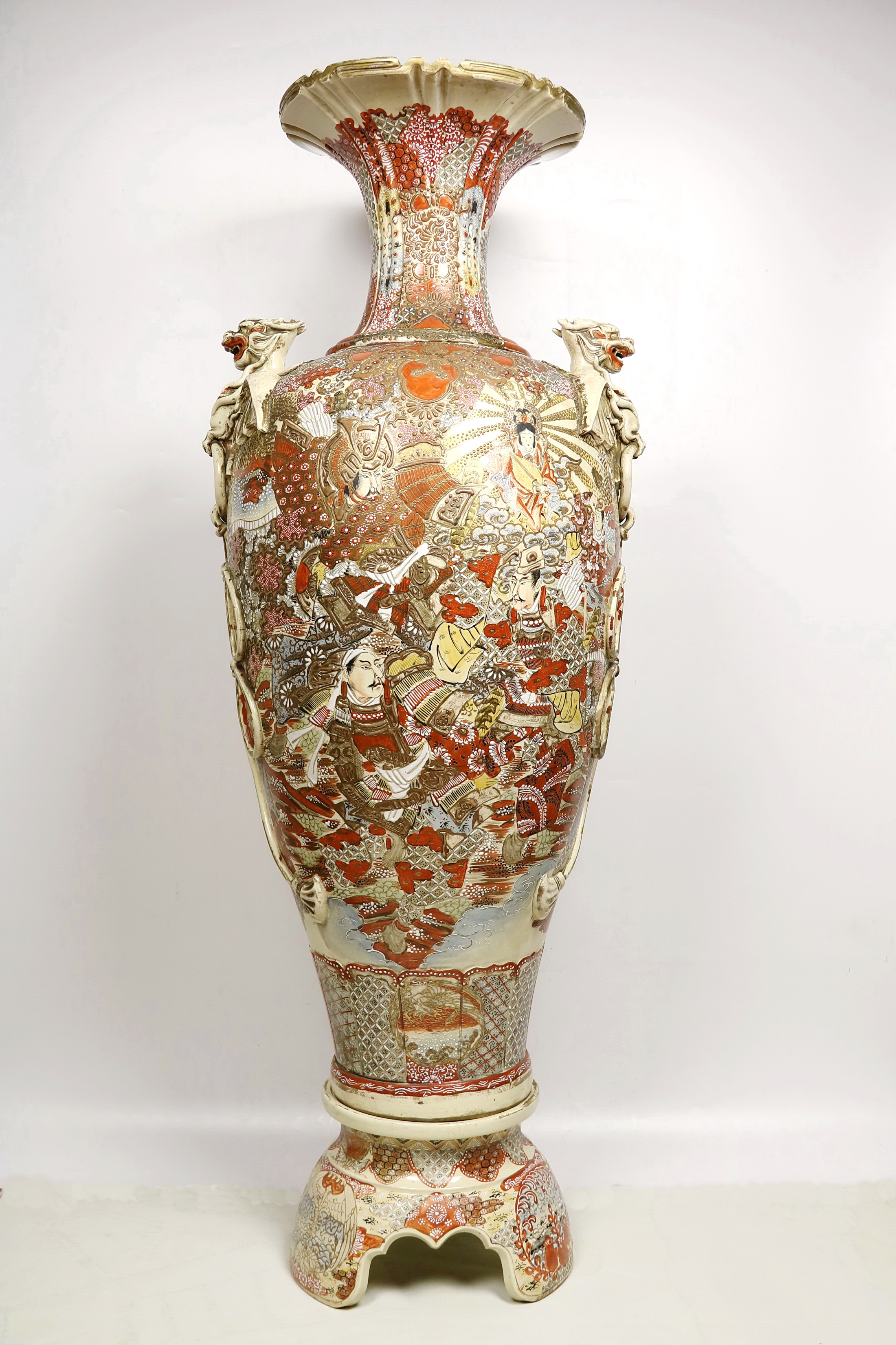 286. Дворцовая ваза «Самурайские сцены» Фаянс, надглазурная роспись полихромными эмалями, железными красителями, позолота. Япония, период Мэйдзи (1868-1912) Сацумские мастерские. Высота — 140 см.