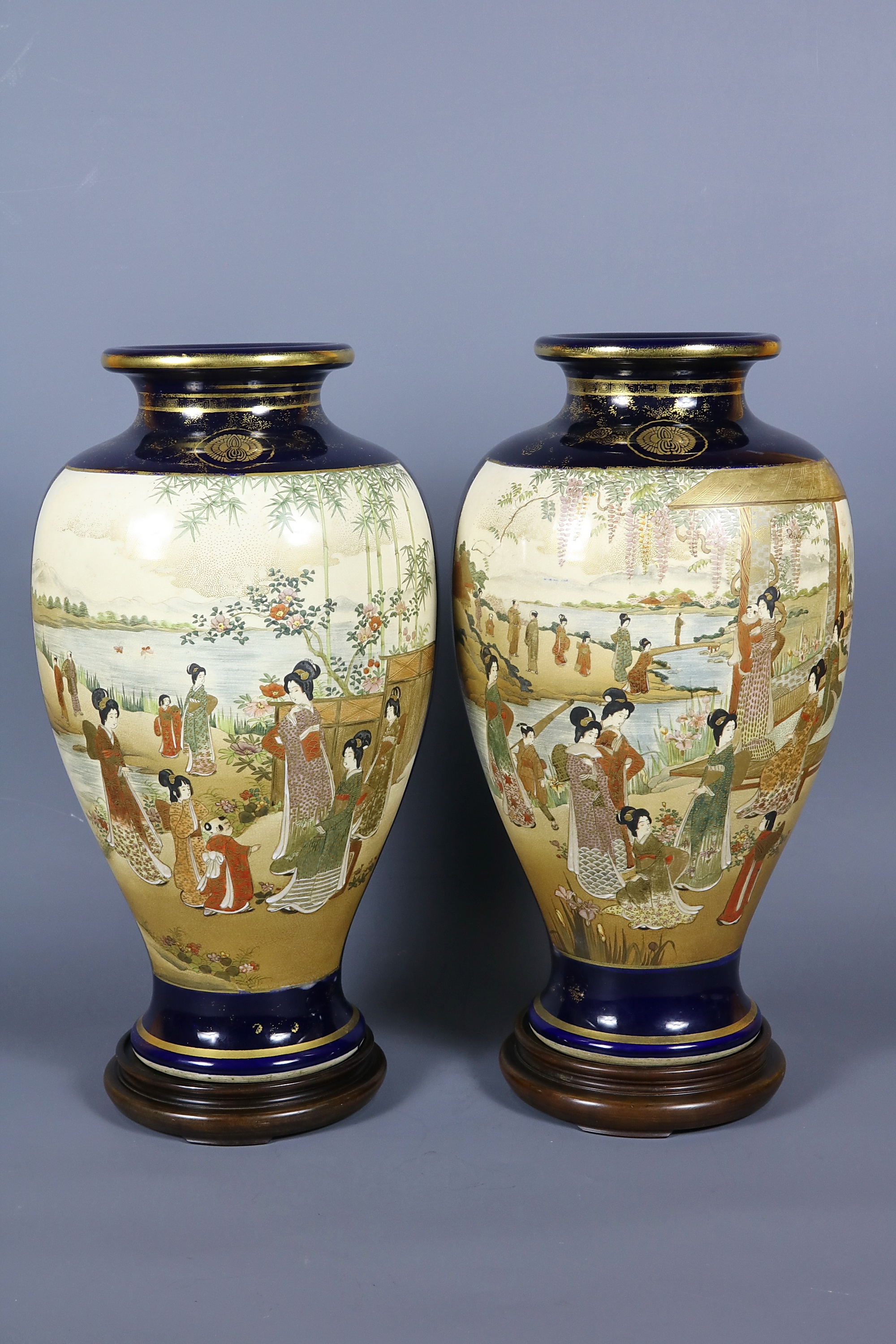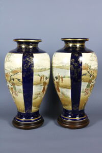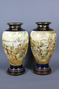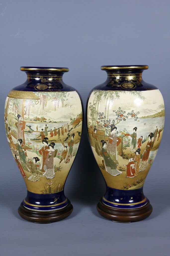 Декорация, как и форма обоих ваз идентична. Композиционное решение парных изделий выполнено в виде круговых композиций, на которых изображены народные гуляния, по поводу одного из синтоистских праздников на фоне ландшафта.