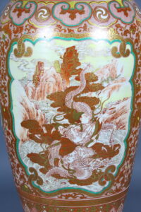 Настоящее изделие представляет собой образец японского художественного фарфора, выполненного в мастерских Кутании, предназначенного для экспонирования на Всемирных выставках, проходящих в конце XIX – начало ХХ веков, в которых Япония принимала активное участие.