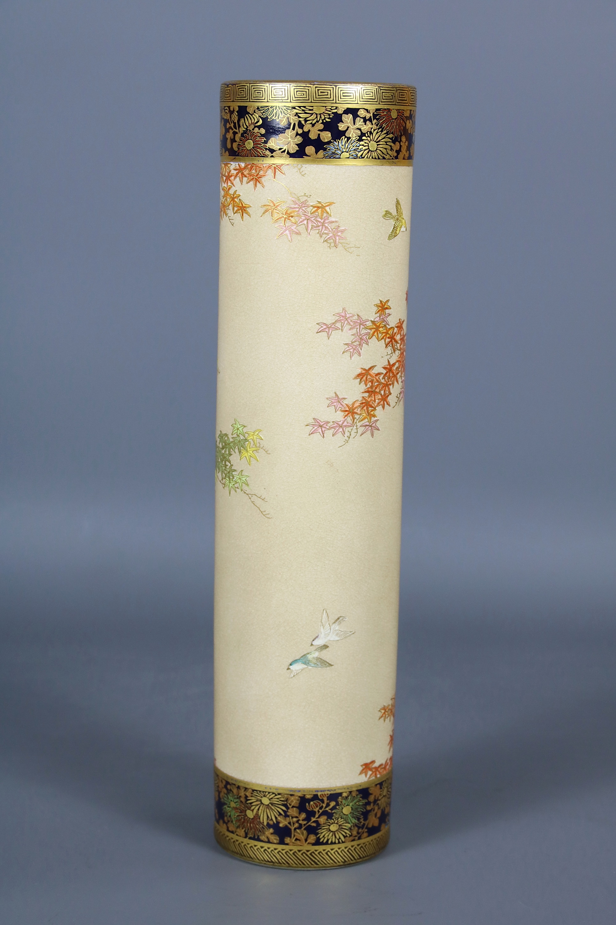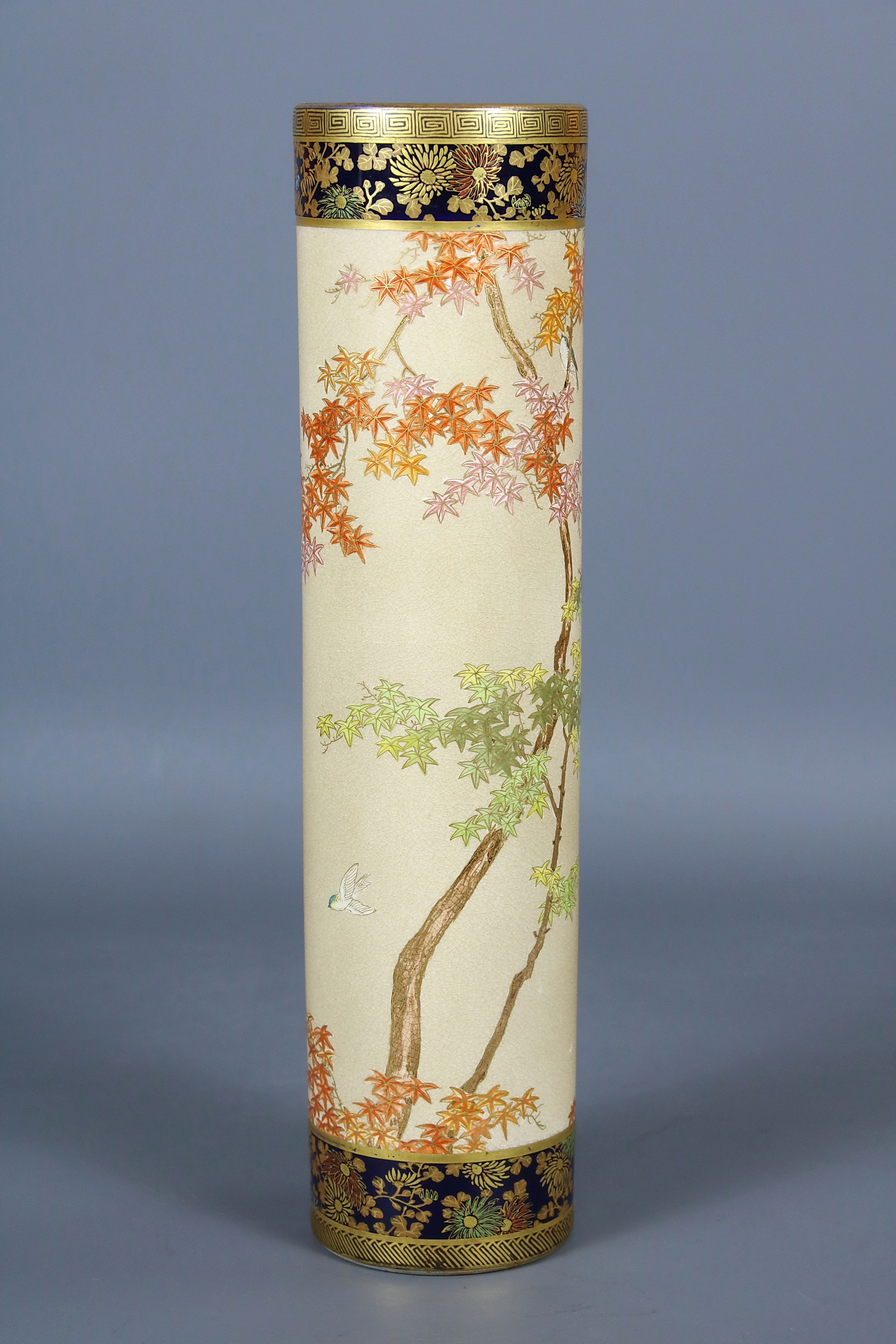 На донышке вазы золотом нанесена иероглифическая надпись: «Кинкодзан дзо». Маркировка свидетельствует, что ваза принадлежат к группе изделий кё-сацума, то есть киотосского фаянса в стиле сацума и созданы в мастерской Кинкодзана VII (Кобаяси Собэй 1868-1927), собравшего под своим руководством целую плеяду талантливейших декораторов. Работы Кинкодзана VII пользовались колоссальным успехом у западных ценителей японского искусства.