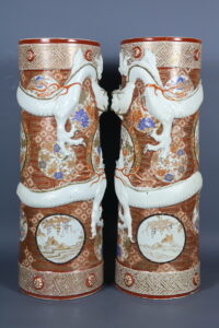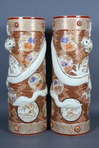 Настоящие изделия представляют собой образец японского художественного фарфора, выполненного в мастерских Кутании, предназначенного для экспонирования на Всемирных выставках, проходящих в конце XIX – начало ХХ веков, в которых Япония принимала активное участие. Название Кутани переводится как «девять долин», потому что место, где находилась деревня, действительно представляет собой девять долин, зажатых горами. Сейчас Кутани стала частью города Кага в префектуре Исикава, расположенной на севере острова Хонсю, на побережье Японского моря. Когда-то этот домен принадлежал могущественному и богатому клану Маэда, состоявшему в родстве с самим сегуном. Глава семьи – Тосихару Маэда занимался очень важными для Японии морскими перевозками, а также владел золотоносным прииском в горах Яманака. Именно наличие кварцевого туфа, спутника золота, способствовало развитию фарфорового производства в Кутани. Использование кварца для производства фарфора Кутани связано с именем алхимика Гото Сэйдзиро, который ранее был направлен в местечко Арита, чтобы досконально изучить технологию фарфорового производства. Арита в префектуре Сага, что расположена на острове Кюсю, уже славилась изготовлением одноименного фарфора.