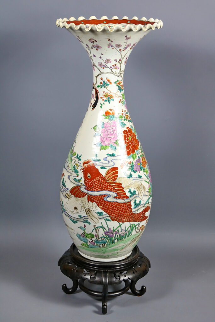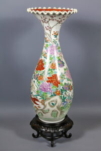 Настоящее изделие представляет собой образец японского художественного фарфора, выполненного в мастерских Кутании, предназначенного для экспонирования на Всемирных выставках, проходящих в конце XIX – начало ХХ веков, в которых Япония принимала активное участие. Название Кутани переводится как «девять долин», потому что место, где находилась деревня, действительно представляет собой девять долин, зажатых горами. Сейчас Кутани стала частью города Кага в префектуре Исикава, расположенной на севере острова Хонсю, на побережье Японского моря. Когда-то этот домен принадлежал могущественному и богатому клану Маэда, состоявшему в родстве с самим сегуном. Глава семьи – Тосихару Маэда занимался очень важными для Японии морскими перевозками, а также владел золотоносным прииском в горах Яманака. Именно наличие кварцевого туфа, спутника золота, способствовало развитию фарфорового производства в Кутани. Использование кварца для производства фарфора Кутани связано с именем алхимика Гото Сэйдзиро, который ранее был направлен в местечко Арита, чтобы досконально изучить технологию фарфорового производства. Арита в префектуре Сага, что расположена на острове Кюсю, уже славилась изготовлением одноименного фарфора.