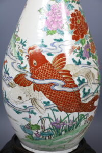 Карп кои символизирует дух настоящего мужчины, который подобно карпу, преодолевающему бурные течения и пороги, преодолевает все жизненные трудности и невзгоды – достигает высокого положения в обществе. Пара рыб олицетворяет гармонию в семье, природе, во Вселенной.