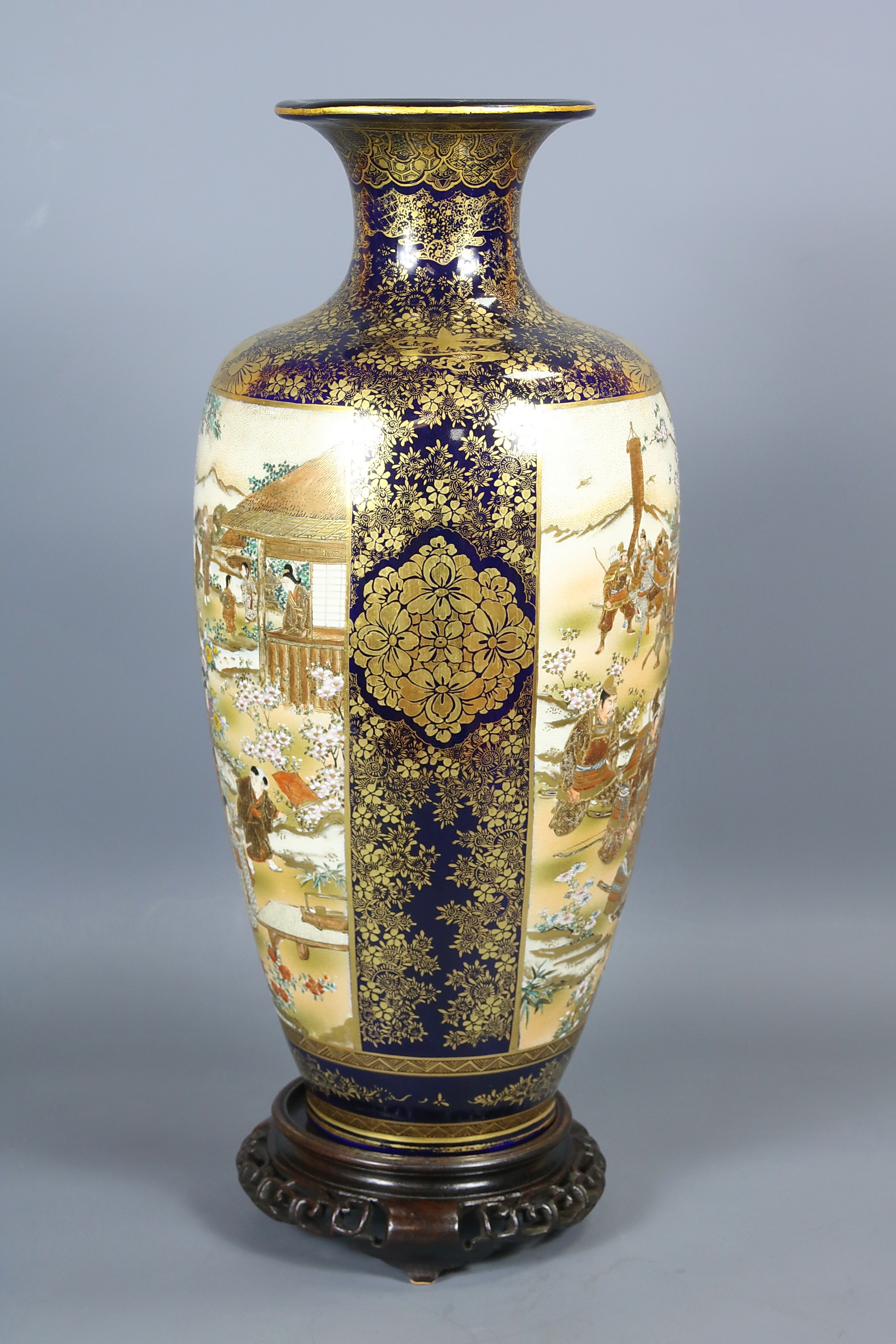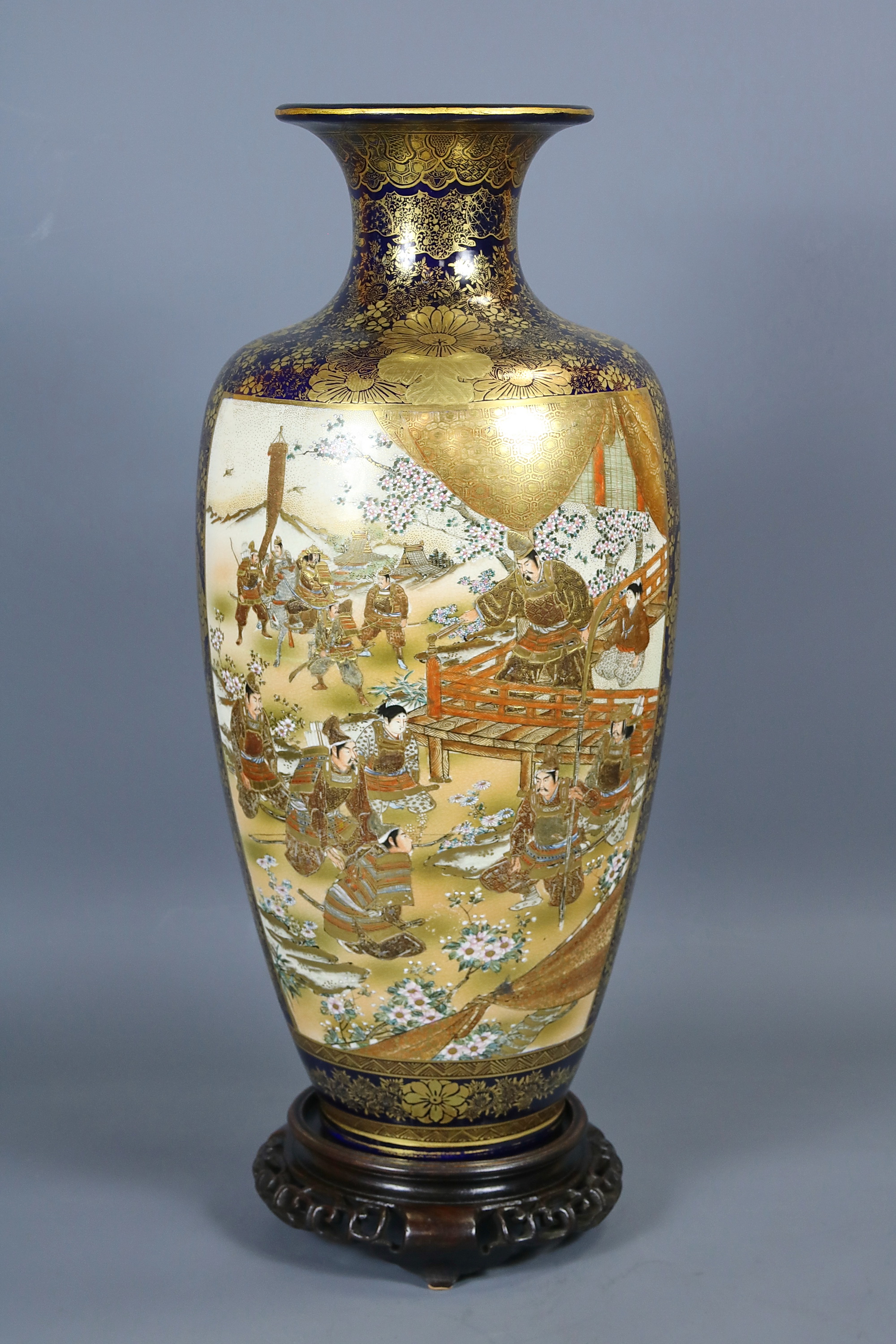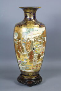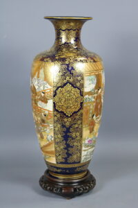 На донышке вазы золотом нанесена иероглифическая надпись: Кинкодзан дзо. Маркировка свидетельствует, что ваза принадлежат к группе изделий кё-сацума, то есть киотосского фаянса в стиле сацума и создана в мастерской Кинкодзана VII (Кобаяси Собэй 1868-1927), собравшего под своим руководством целую плеяду талантливейших декораторов. Работы Кинкодзана VII пользовались колоссальным успехом у западных любителей японского искусства.