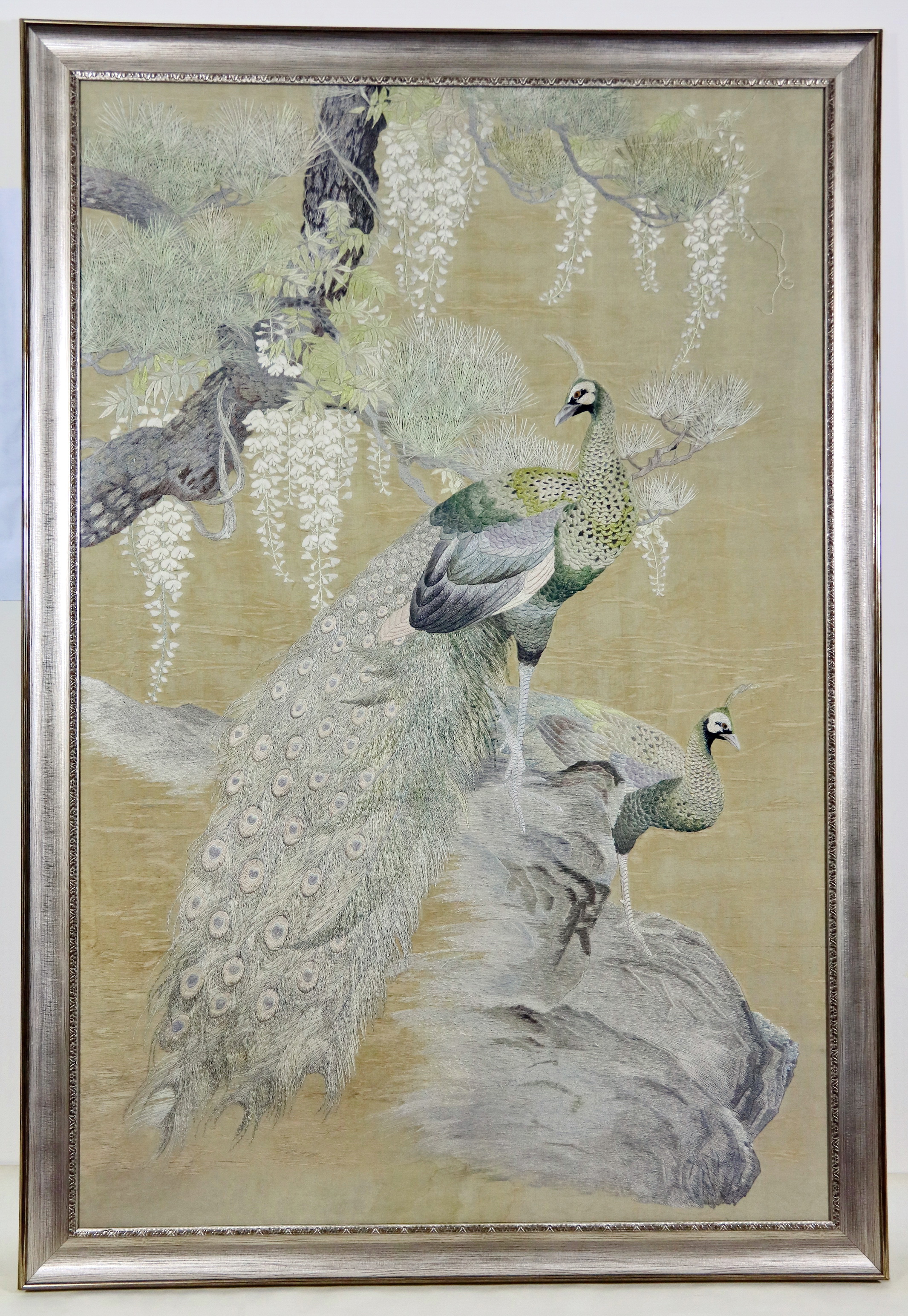Вышивка шелковыми нитями по шелковой основе.
