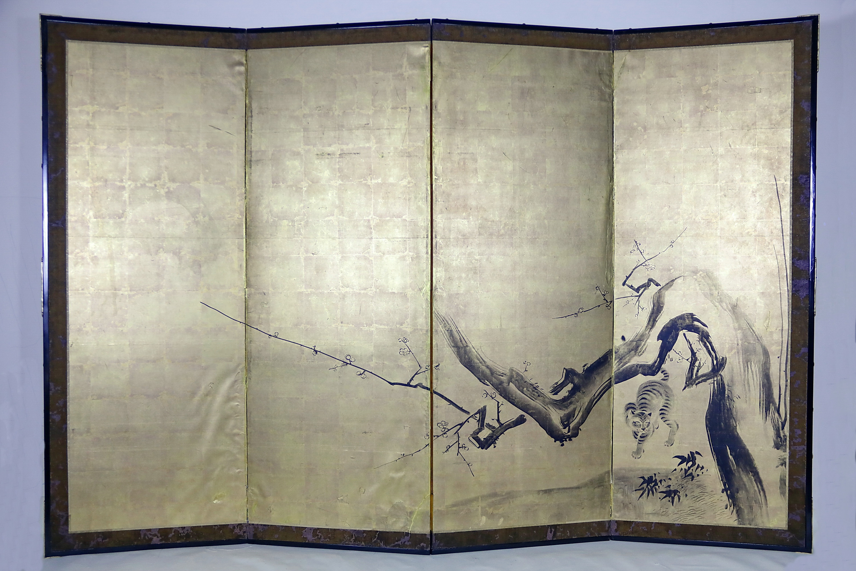 11. Четырёх створчатая ширма «Камышовый кот у старой сливы»