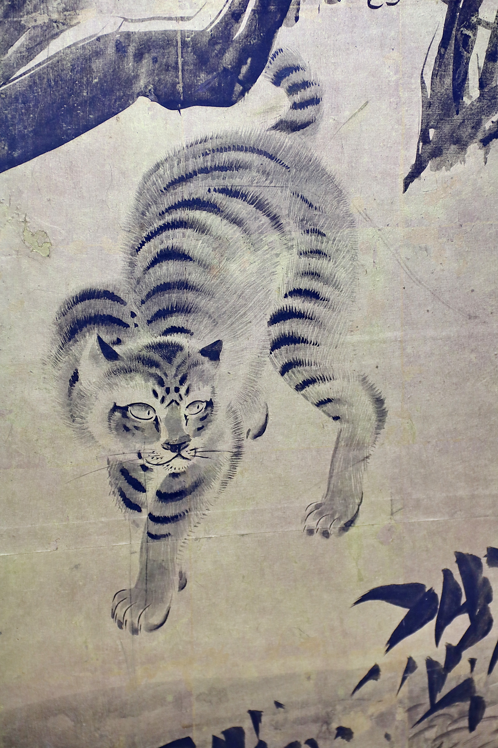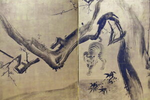 Главная » Галерея » 11. Четырёх створчатая ширма «Камышовый кот у старой сливы»