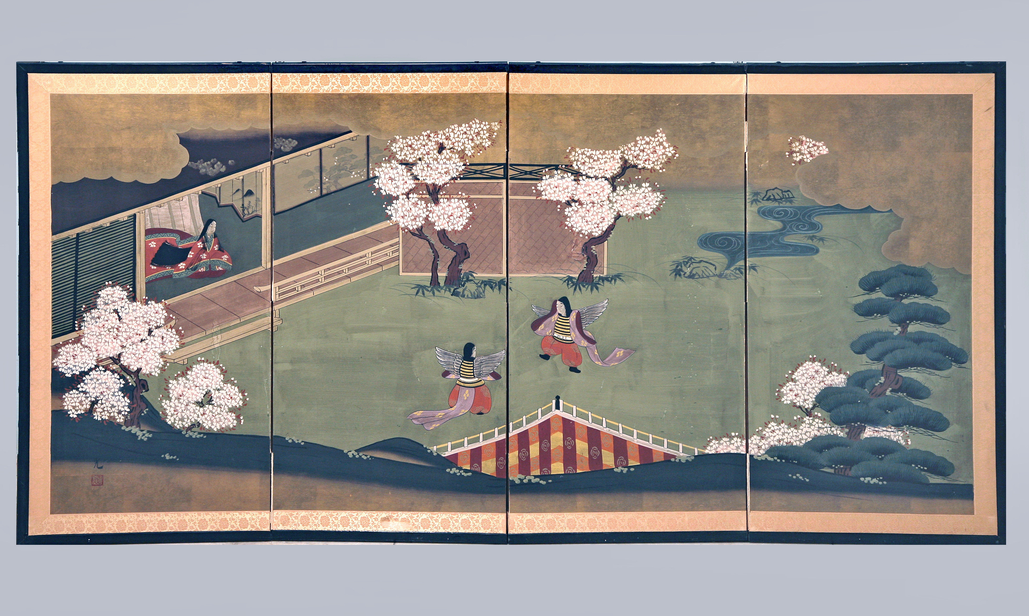 23. Ширма четырёхстворчатая ко-бёбу «Разыгрывающие представление»